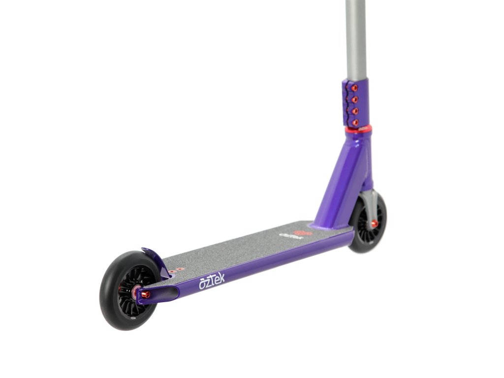 - Na skatepark orientovaná freestyle koloběžka od značky Aztek má úzkou a lehkou desku,