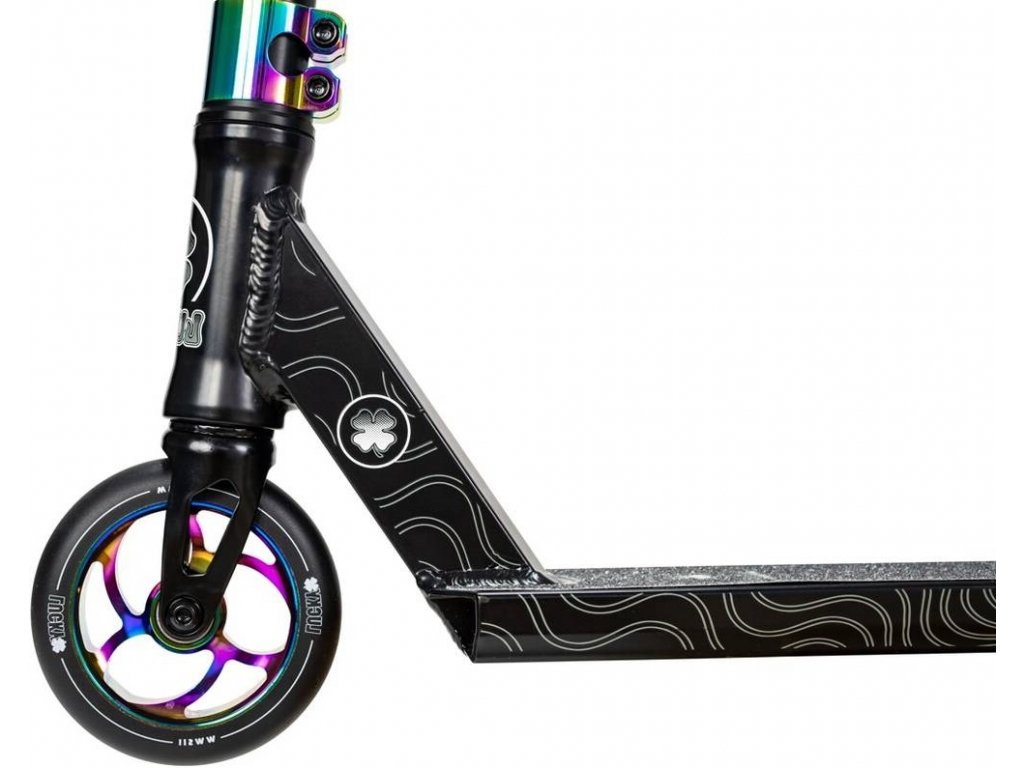 - Na skatepark orientovaná freestyle koloběžka od značky Lucky má úzkou a lehkou