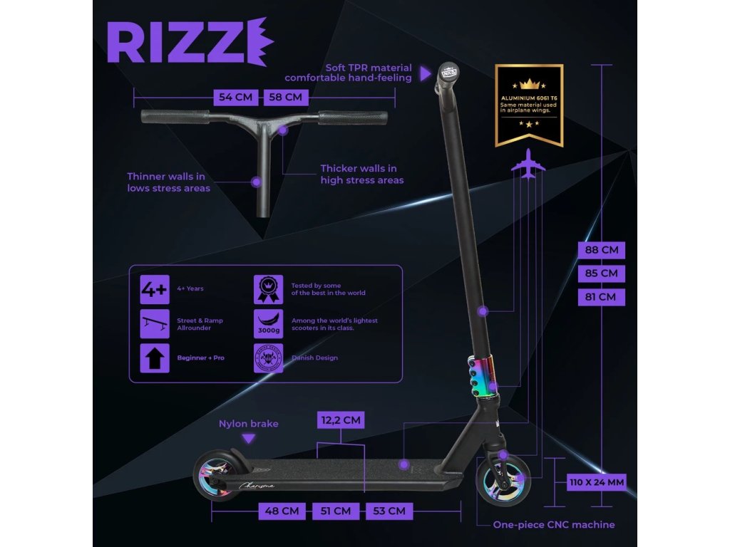 Testováno pro týmem NKD scooters. RIZZ "Charisma" nabízí extrémně lehký výkon bez