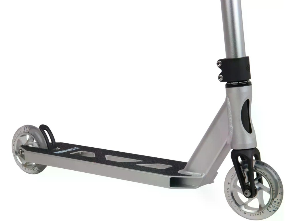 Lux od značky Striker je freestylová koloběžka vhodná pro jízdy ve skateparku .