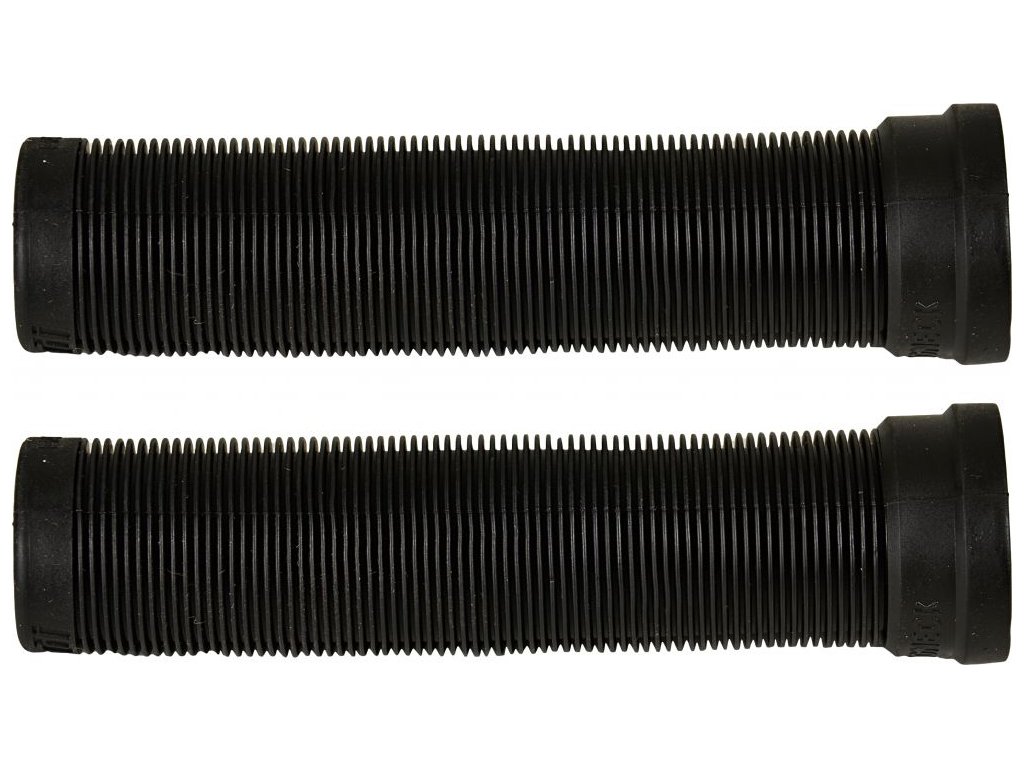 Gripy mají klasický houbový tvar s žebrovaným vzorem, jsou vyrobeny z příjemného