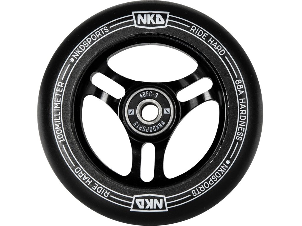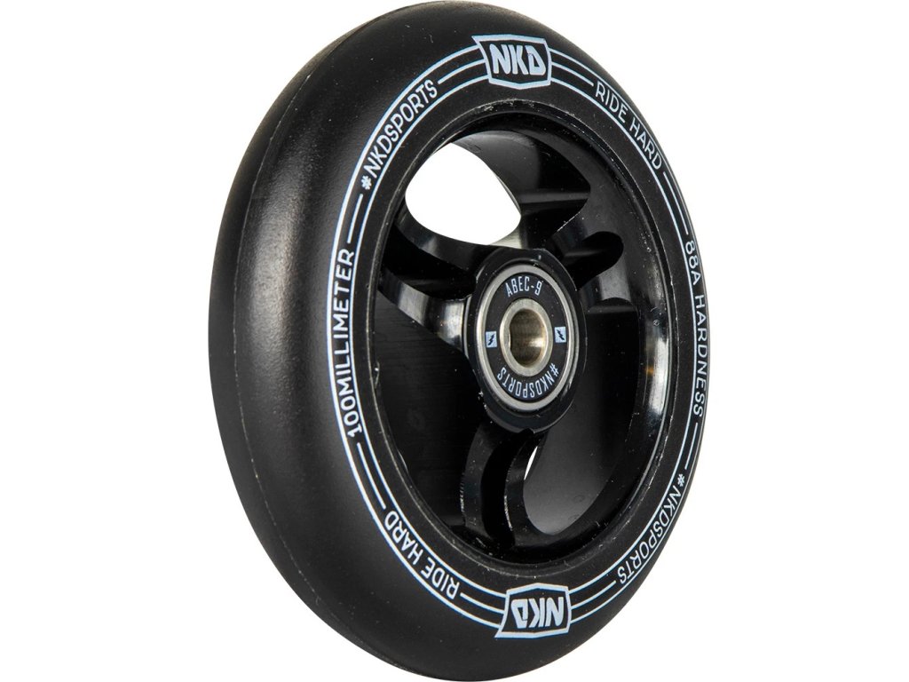Tato kolečka od značky NKD Justice Pro Scooter mají rozetový design se třemi lopatkami