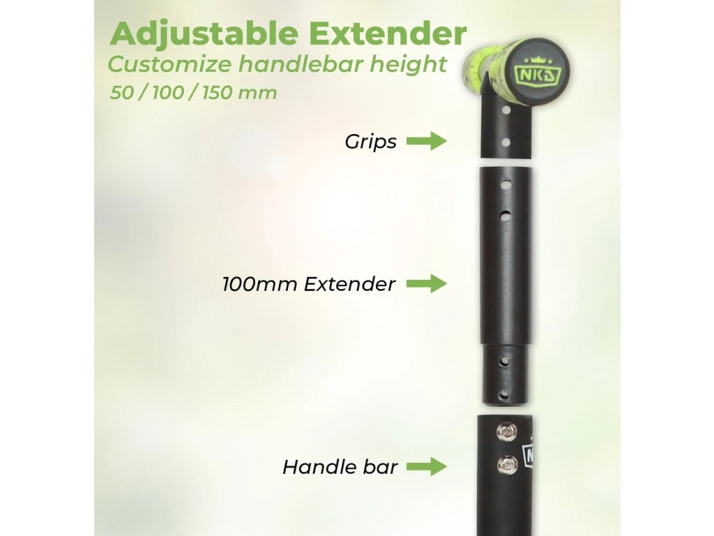 Koloběžka je dodávána s 3 prodlužovacími moduly (50 mm / 100 mm / 150 mm), které se snadno