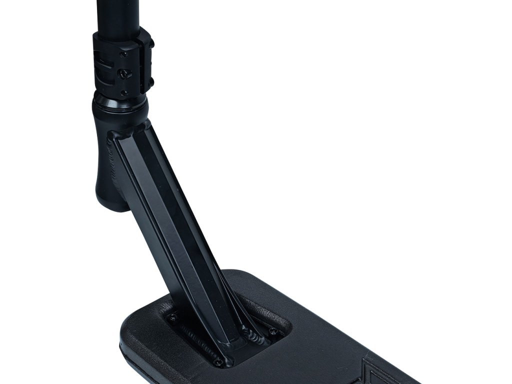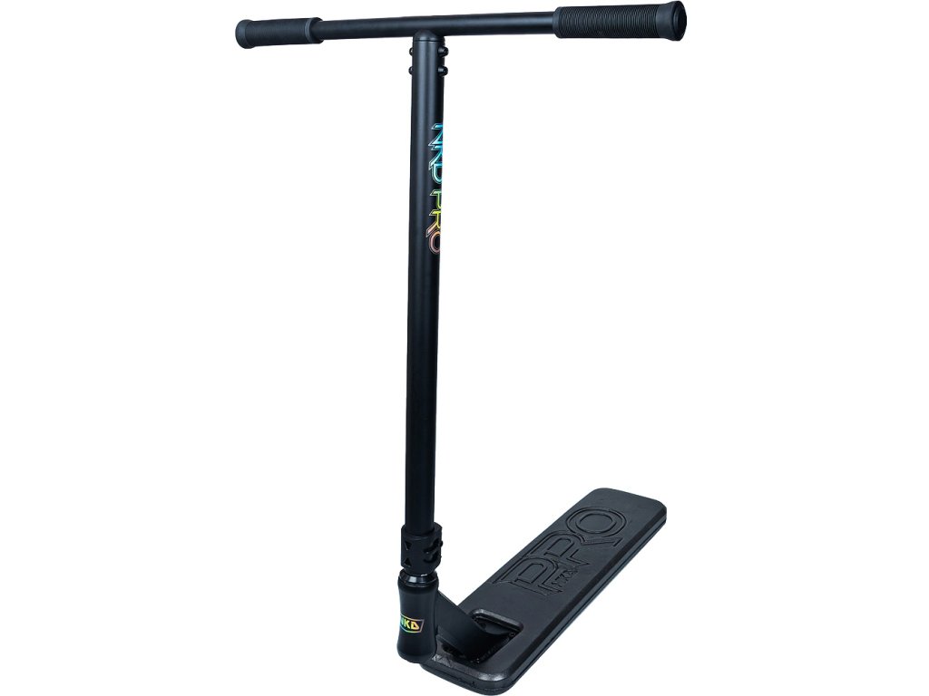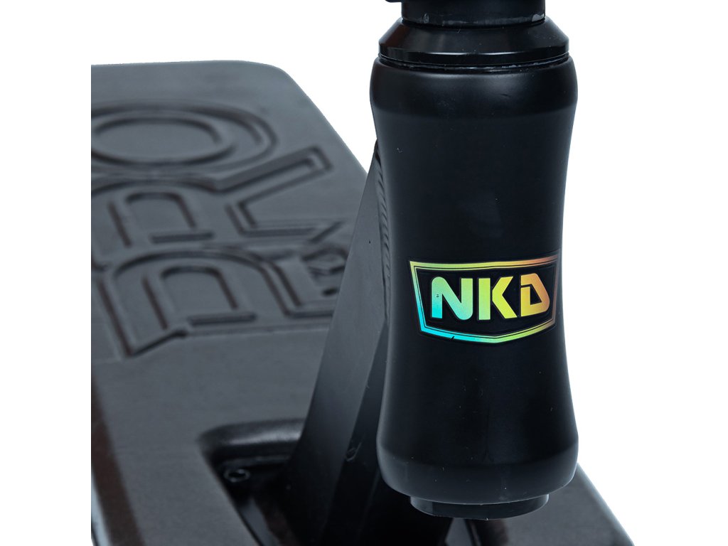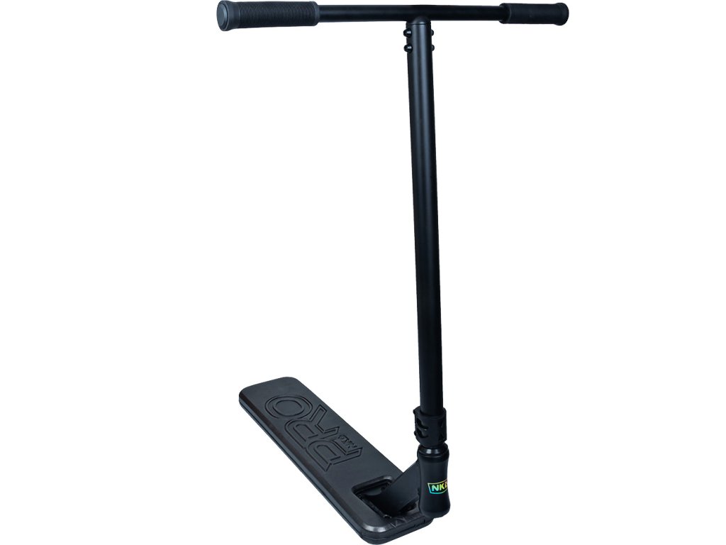 Na rozdíl od běžných trampolínových koloběžek má NKD Pro desku s úmyslným rozložením hmotnosti na konci.