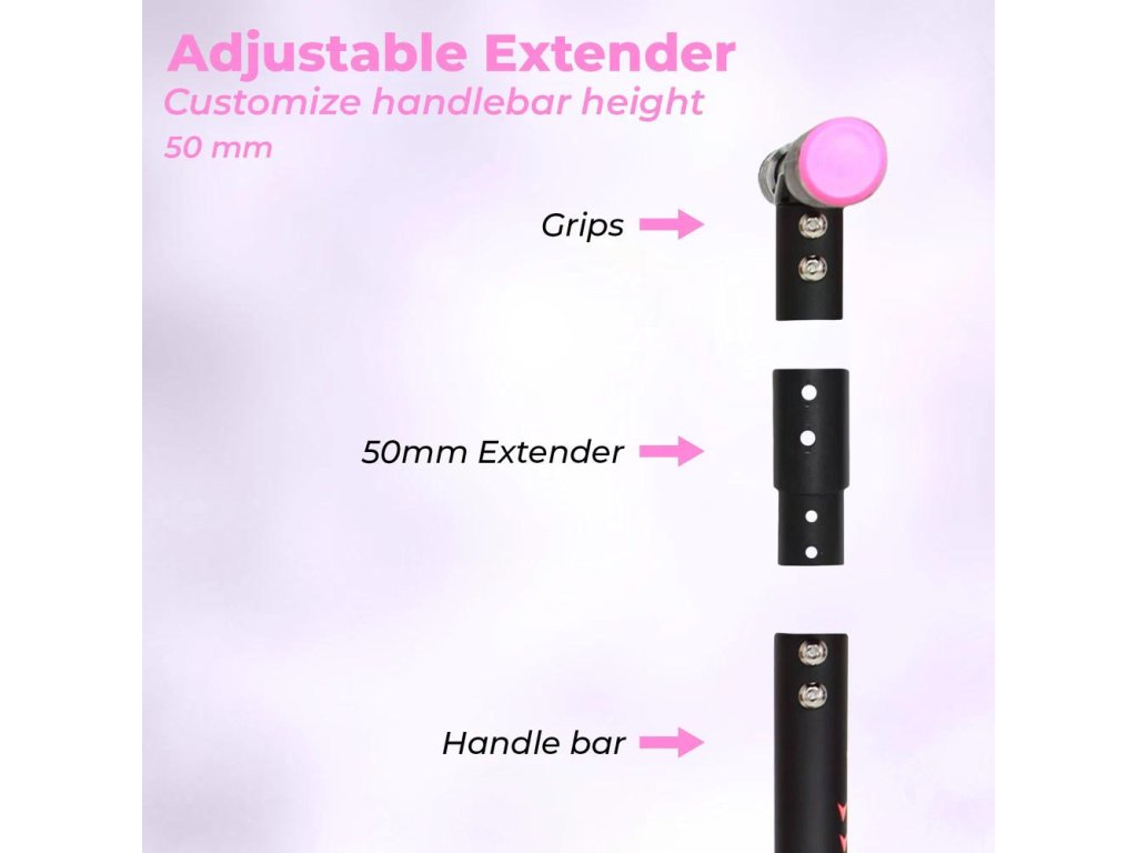 Koloběžka je přizpůsobitelná menším i větším jezdcům. Výška se dá snadno upravit: