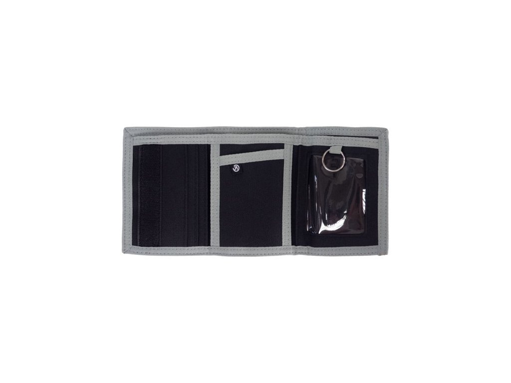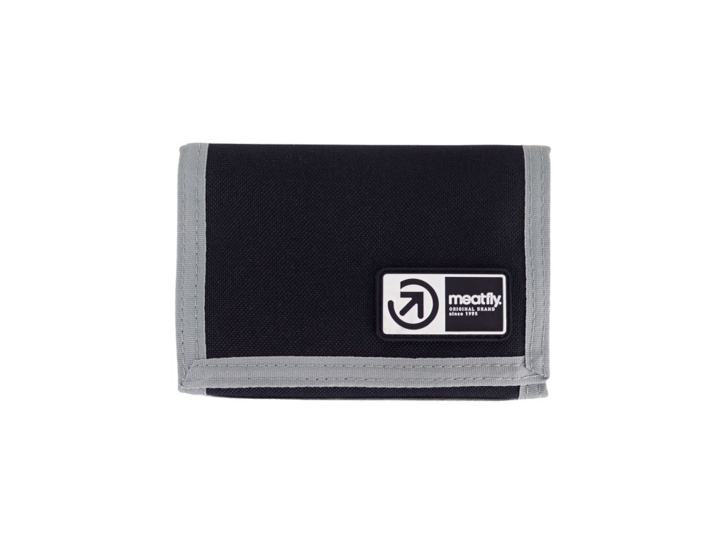 Peněženka Meatfly Dewey s koženým logem na přední straně a zapínáním na suchý zip.