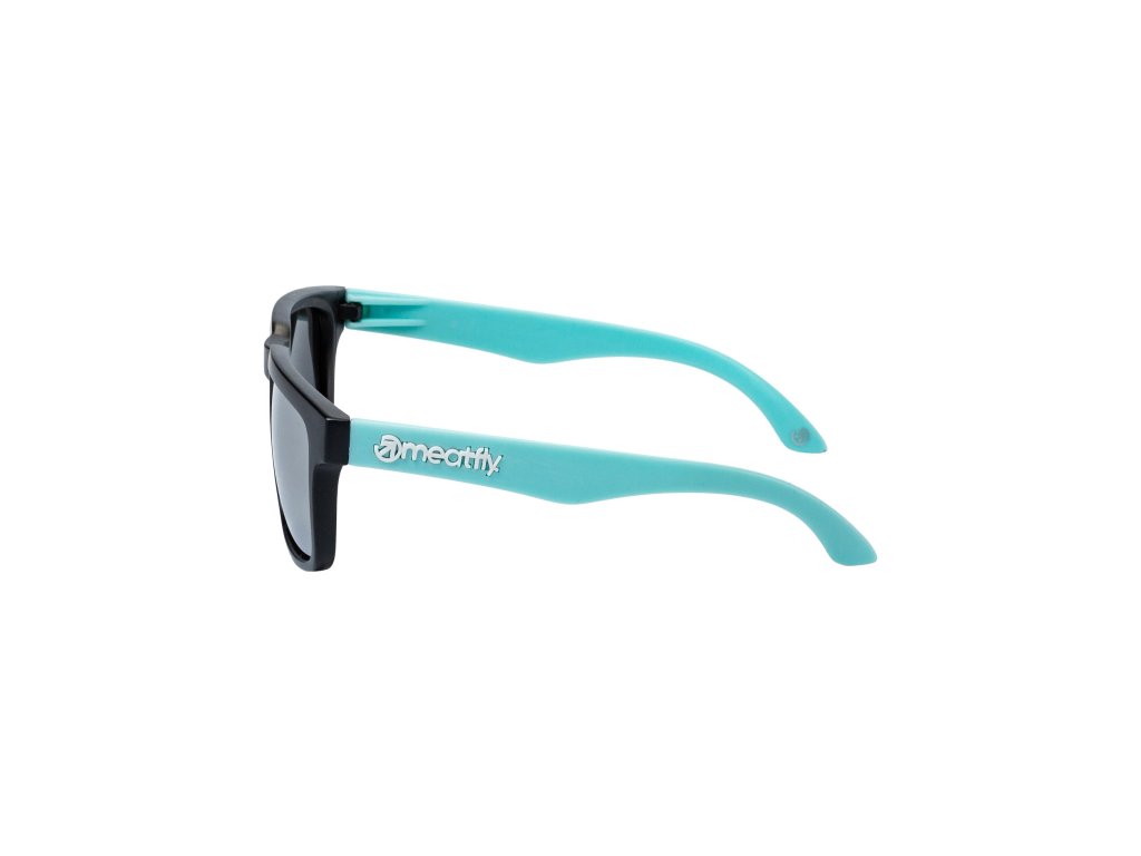 Sluneční brýle Meatfly Memphis v plastovém rámu s potiskem loga na obou stranách. Brýle poskytují ochranný filtr UV 400 a součástí balení je ochranný pytlík.